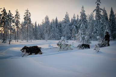 Hurmaavat huskyt puolestaan odottavat intoa puhkuen lähtöä rekiretkelle halki lumisten maisemien. Tunne vauhdin huuma ja koiravaljakon saumaton yhteistyö – huskyajelu on unohtumaton elämys, joka sopii koko perheelle.